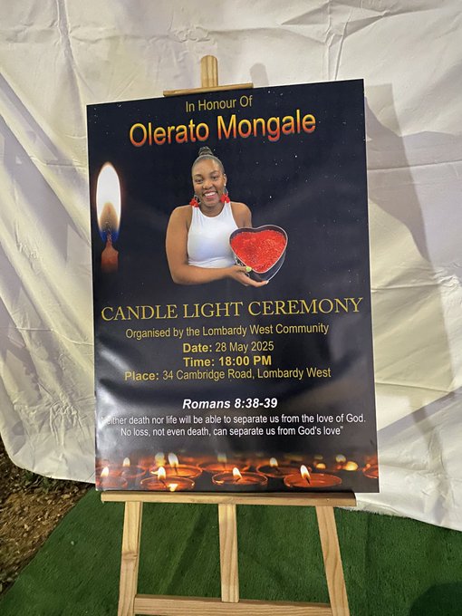 Mongale’s body was found on a sidewalk in Lombardy West on Sunday afternoon, aided by community members, shortly after she was picked up from her home in Athol by a man known only as “John,” who was driving a VW Polo.